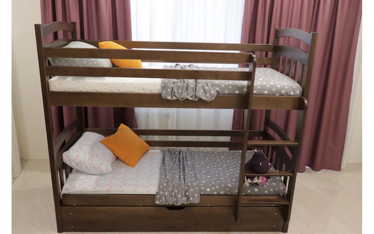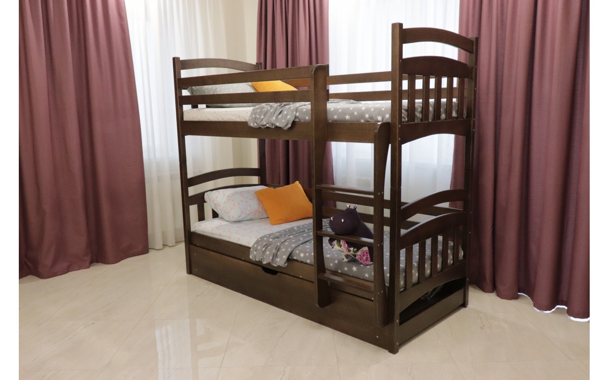 Двухъярусная кровать Бэмби выполнена из экологически чистого, безопасного и прочного массива бука. Она покрыта высококачественным, безопасным для здоровья и гипоаллергенным лаком. Все элементы и материалы прошли украинскую сертификацию.