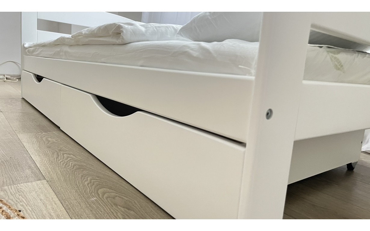 Планку безопасности и ящики можно выбрать как дополнительную опцию. Ящики - внутренний корпус изготовлен из ДСП, фасад - из массива бука. Цвет ДСП корпуса белый для кроватей в цветах: белый, словая кость, айвори, хаки, ваниль сонома. Цвет ДСП корпуса натураль для кроватей в цветах: натураль, светлый орех, хаки, яблоня, ольха. Цвет ДСП корпуса темный орех для кроватей в цветах: темный орех, палисандр, венге, каштан