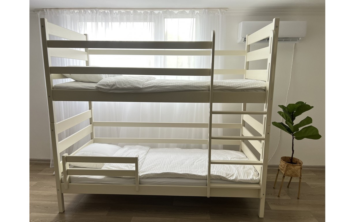 Ліжко виготовлене з екологічно чистих матеріалів – натуральної деревини. Воно додатково оснащене бортиками і сходами, а тому мами і тата можуть бути спокійні – сни на такому дитячому ліжечку завжди міцні, солодкі та безпечні.