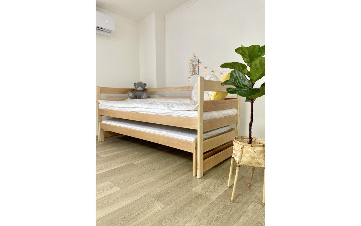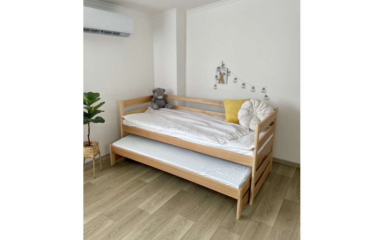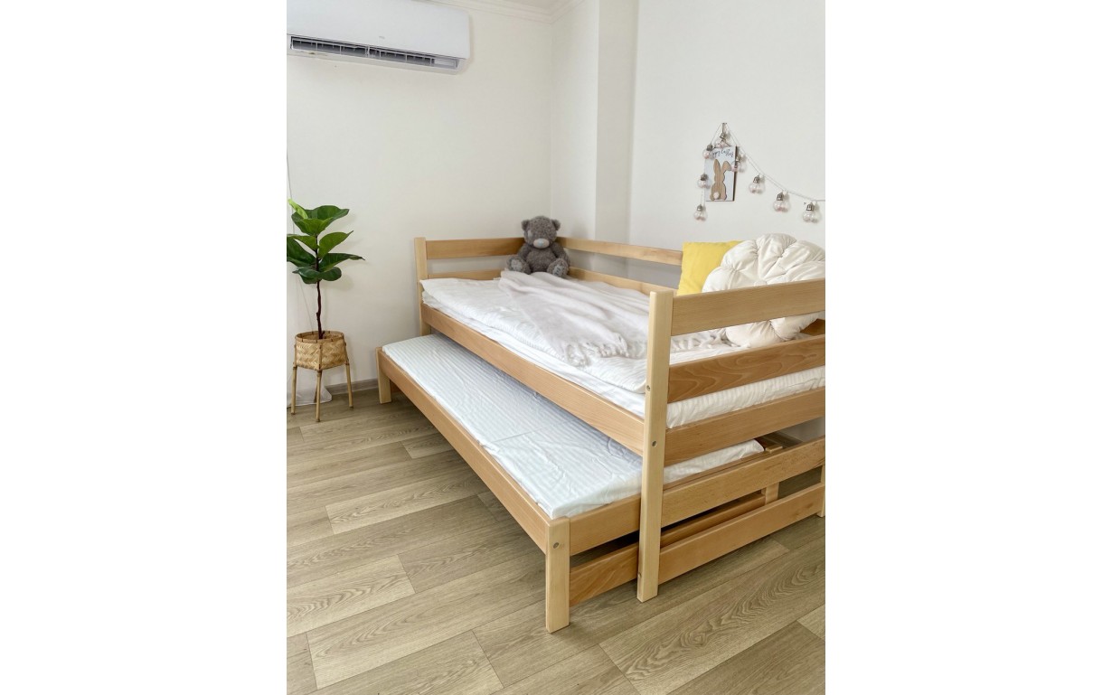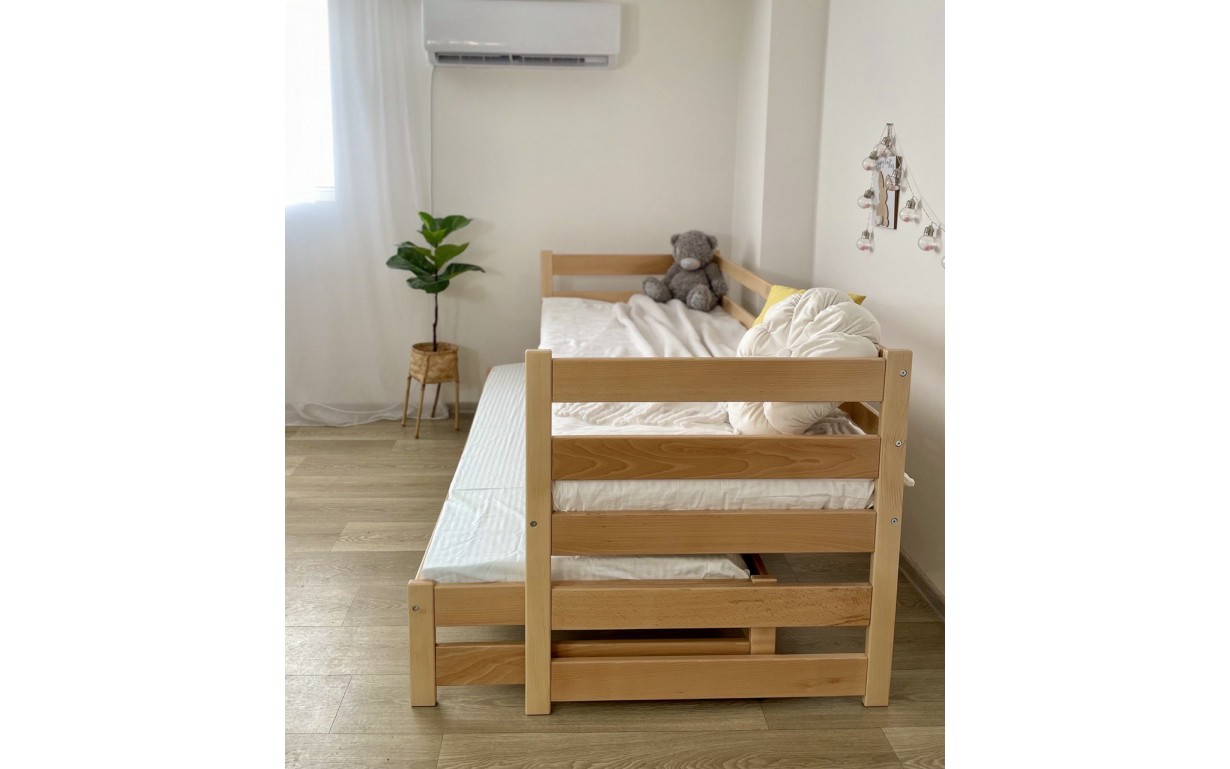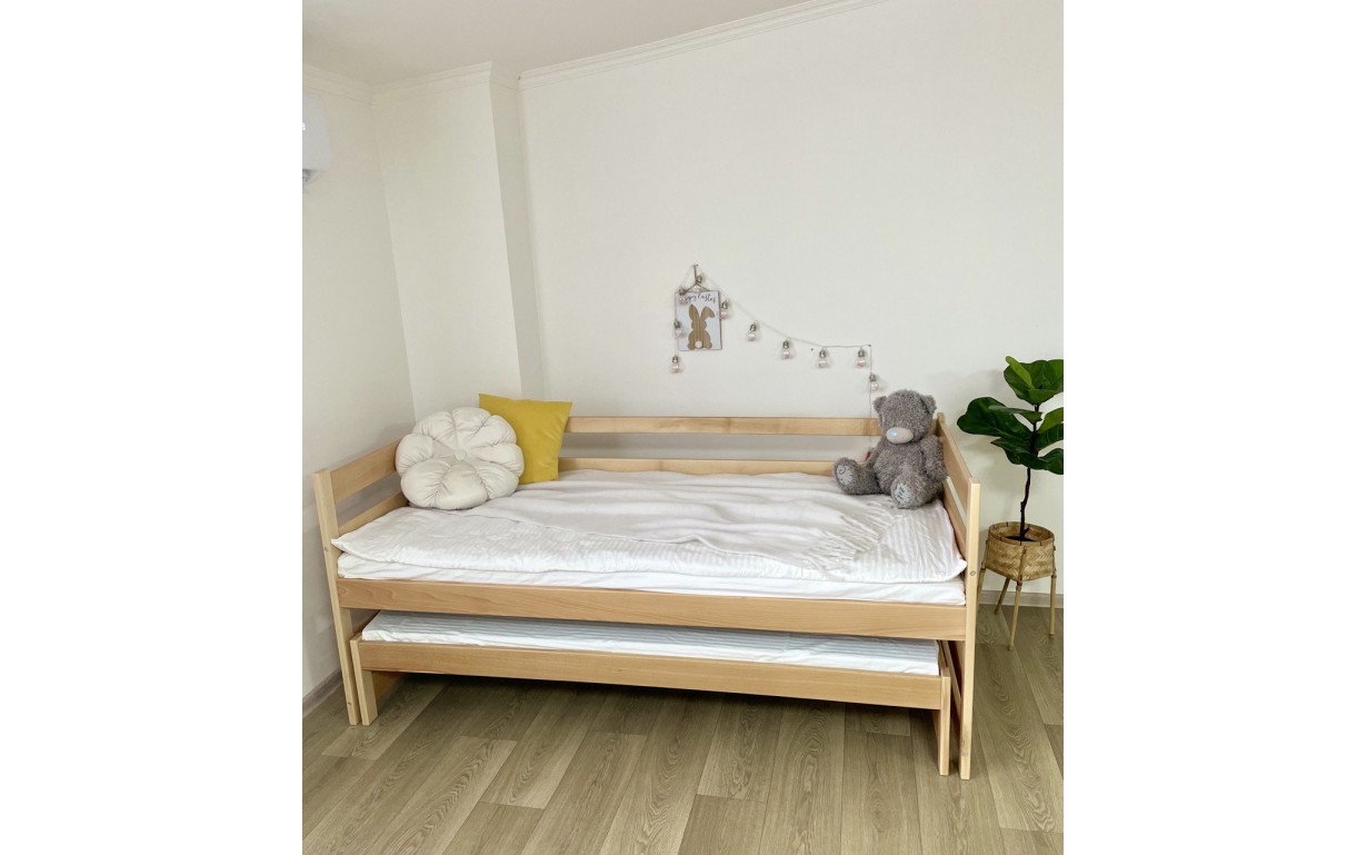 Ліжко виконане з натуральної деревини (масиву бука) і оснащене захисними бортиками, а тому абсолютно безпечне для дітей.