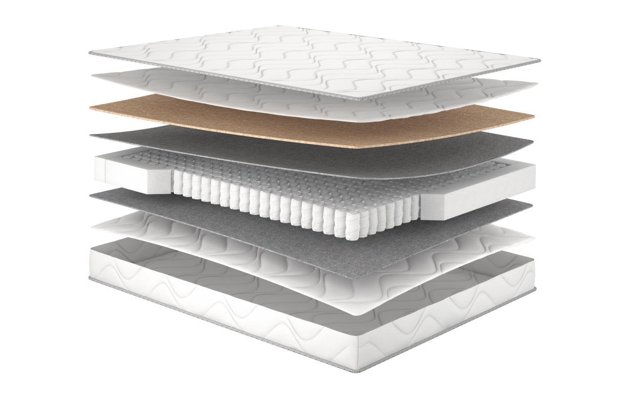 Матрац Rulle Матролюкс класичний двосторонній матрац висотою 19 см із середньою жорсткістю 3,5 / 3. Завдяки поєднанню незалежного пружинного блоку Pocket Spring, кокосової койри та ортопедичної піни забезпечує надійну підтримку й комфорт. Витримує навантаження до 130 кг. Чохол із мікрофібри з глибокою прошивкою додає міцності та зручності.