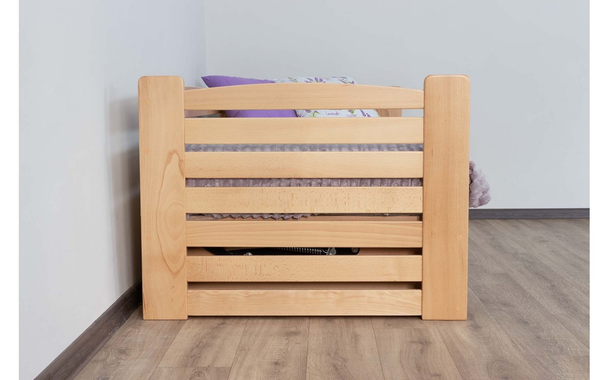 Матеріал - екологічно чистий масив бука, який характеризується своєю міцністю, надійністю і довговічністю. Покриття - сертифіковані матові лаки Європейського виробництва, безпечні для Вас і Ваших дітей. Каркас (основа) - ортопедичні гнуті ламелі покриті лаком, які будуть надійним підґрунтям під матрац.